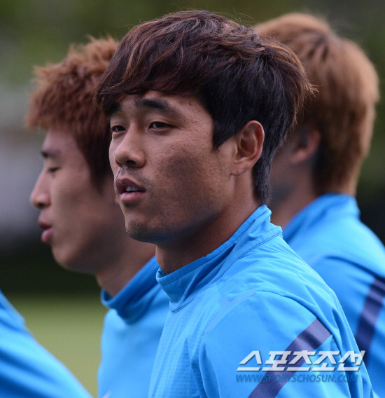 올림픽 축구대표팀 박주영이 6일(현지시간) 영국 맨체스터 Grammar School에서 열린 훈련에서 가벼운 달리기로 몸을 풀고 있다.