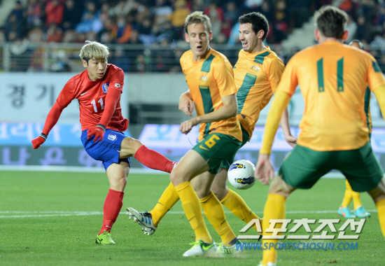 최강희 감독이 이끄는 A대표팀이 14일 경기 화성종합경기타운 주경기장에서 호주와 평가전을 가졌다. 이근호가 슛팅을 시도하고 있다. 화성=허상욱 기자 wook@sportschosun.com