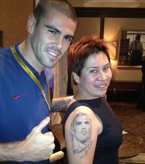 발데스의 얼굴 문신 아래에는 '인생의 승리(victoria en la vida)'라는 스페인 경구가 덧붙여져 있다.
