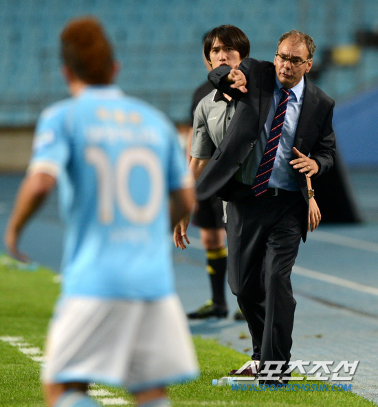 대구와 강원의 현대오일뱅크 K리그 2012 경기가 8월 22일 대구스타디움에서 열렸다. 대구 모아시르 감독이 작전지시를 하고 있다. 대구=허상욱 기자 wook@sportschosun.com/2012.08.22/