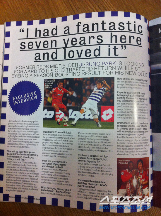 맨유 매치데이매거진에 실린 박지성 인터뷰.