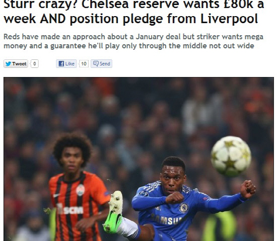 리버풀은 1월이적시장에서 스터리지를 영입하기 위해 이미 첼시 측과 대화를 나누고 있는 것으로 알려졌다. 문제는 두 클럽간의 합의가 아니다. 스터리지의 요구조건이다. 4일(한국시각) 영국 일간지 데일리미러는 스터리지가 리버풀에 한 요구조건을 보도했다. 데일리미러에 따르면 스터리지는 무려 8만파운드의 주급과 중앙공격수에서 뛰게 해줄 것을 요구한 것으로 알려졌다. 이 정도면 특급 공격수 수준이다. 리버풀 측은 스터리지의 요구사항에 다소 당황한 것으로 알려졌다.