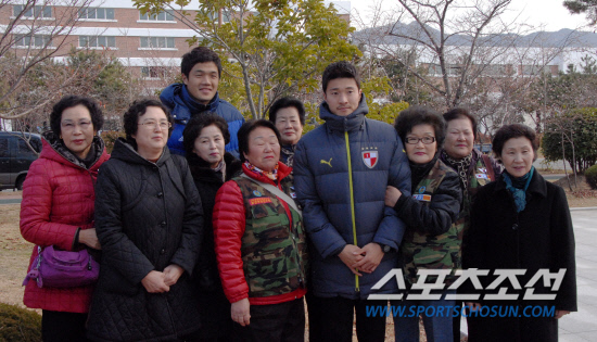 K-리그 전현직 선수들이 참여하는 '추캥(축구로 만드는 행복)'이 4일과 5일 해군진해기지사령부를 찾았다. 오장은 정성룡 박종우 등 선수들은 독도함에 승선해 1박2일을 보냈다. 또 5일에는 자선 경기도 펼쳤다. 5일 정성룡과 박종우가 베트남전 미망인분들과 기념촬영을 하고 있다. 진해=이 건 기자 bbadagun@sportschosun.com