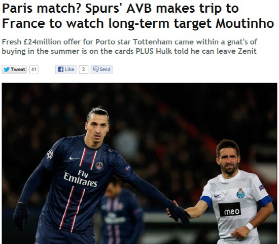6일(한국시각) 영국 일간지 데일리미러는 비야스-보아스 감독이 1월 이적시장에서 무티뉴를 데려오기 위해 2400만파운드를 제시할 계획이라고 보도했다. 비야스 보아스 감독은 파리생제르맹과 포르투의 경기를 관전하기 위해 직접 프랑스까지 온 것으로 알려졌다.