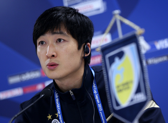 | 곽태휘가 7일 일본 도요타 스타디움에서 공식 기자회견을 갖고 있다. 사진공동취재단 |