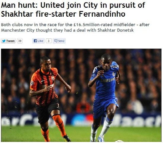 앙숙도 이런 앙숙이 없다. 그라운드 위에서 뿐만 아니라 사사건건 결정적인 순간마다 서로의 발목을 잡는다. 맨시티와 맨유가 선수영입을 두고 다시 한판 붙었다. 주인공은 샤흐타르 도네츠크의 미드필더 페르난딩요다.