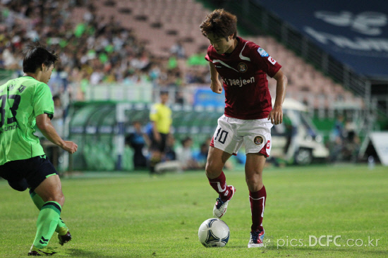 2011년은 아픔이었다. 초반은 좋았다. 이현웅을 중심으로 미드필드를 재편한 대전은 시즌초반 깜짝 선두에 나서는 등 돌풍을 일으켰다. 호사다마라고 했던가. 이현웅은 발목부상으로 쓰러졌다. 이후 팀은 추락을 거듭했다. 마무리 패스를 넣어줄 선수가 없었다. 왕선재 전 감독은 지휘봉을 놓을때까지 이현웅의 부재를 아쉬워했다. 시즌 막바지가 되서야 그라운드에 돌아올 수 있었다.