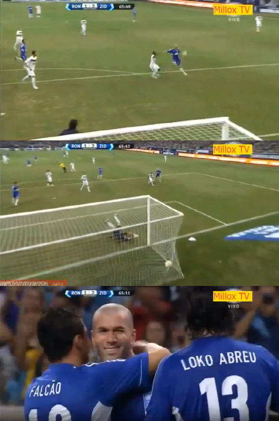 이날 가장 큰 박수를 받은 장면은 역시 지단의 발리슛이었다. 우루과이의 로코 아브레우(보타포고)의 로빙 패스를 넘겨받은 지단은 페널티 지역 왼쪽으로 이동하면서 전성기를 떠올리게 하는 폼의 왼발 발리슛으로 골망을 흔들었다.