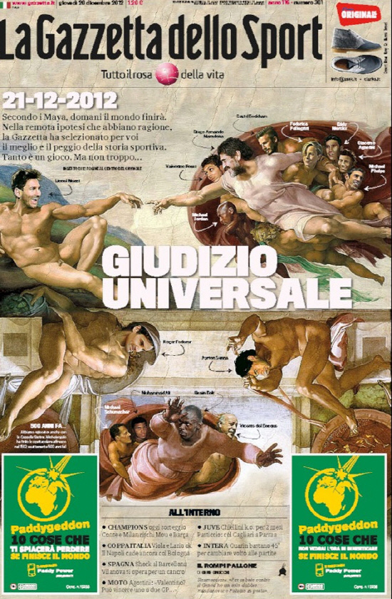 이 신문은 마야 문명 달력에서 비롯된 '2012년 12월 21일 지구멸망설'에 맞춰 '천지창조'란 제목 아래 '가장 기억에 남는 스포츠 명장면' 특집을 기획했다.