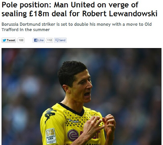 다음시즌 레반도프스키가 영입된다면 웨인 루니, 로빈 판 페르시와 함께 이룰 맨유의 닥공축구는 한층 파괴력을 더할 전망이다.