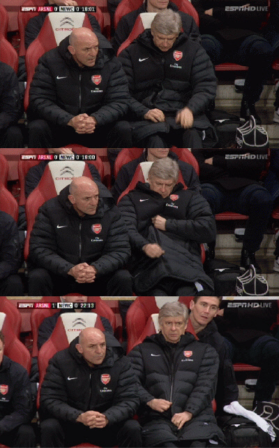 19분 시오 월콧의 선제골이 터진 뒤 22분 쯤 다시 카메라가 벤치를 잡았을 때까지 벵거 감독은 지퍼에 미련을 못 버렸다.