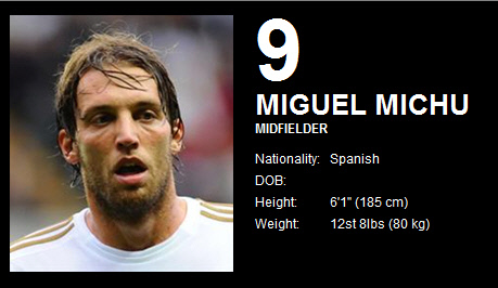 스완지시티의 공격을 이끌고 있는 스페인 출신의 미추다. 스페인 프리메라리가 라요 바예카노를 떠나 잉글랜드 프리미어리그(EPL) 스완지시티에 입성한 미추는 23경기에 출전해 14골을 넣었따. 리그에서는 13골을 넣으며 로빈 판 페르시(맨유·16골) 수아레스(리버풀·15골)에 이어 뎀바 바(첼시)와 함께 득점순위 공동 3위에 올라 있다.