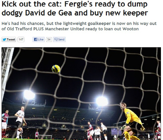 퍼거슨 감독은 결국 데 헤아를 팔고 확실한 넘버1 골키퍼를 물색하기로 했다. 마침 레알 마드리드에서 데 헤아를 원한다는 보도도 이어지고 있다. 퍼거슨 감독은 스토크 시티의 아스미르 베고비치와 리버풀의 페페 레이나를 물망에 올려놓고 있다. 베고비치의 경우 올시즌 엄청난 활약으로 리그 최고의 골키퍼로 꼽히고 있다. 스토크에서 팔지 않겠다는 뜻을 내비치고 있다. 레이나의 경우 브렌단 로저스 감독과 사이가 좋지 않아 영입이 더 수월하다는 장점이 있다.