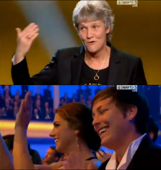 현재 스웨덴 대표팀을 지휘하고 있는 순드하게는 지난해 런던 올림픽에서 미국을 금메달로 이끈 공을 인정받아 여자 감독상을 받았다. '스웨덴 2013'이라고 적힌 셔츠를 입고 무대에 나선 그는 함께 고생한 스태프에게 고마움을 전했다.
