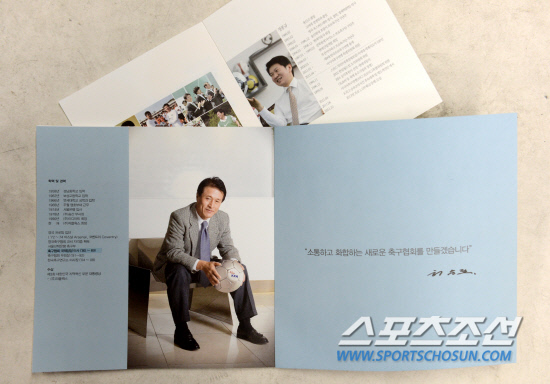 | ◇허승표 회장과 정몽규 총재의 선거 공약 책자. 허상욱 기자 wook@sportschosun.com |