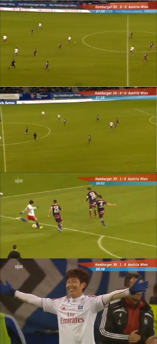 함부르크 북독일 방송(NDR)이 중계한 골 장면의 좀 더 긴 버전에 따르면, 이 득점은 손흥민이 만든 단독 찬스에 따른 것이다. 자기 진영 중간쯤에서 공을 받은 그는 중앙선을 지나 무려 60m를 공을 치고 나간 간 뒤 슛으로 연결시켰다.