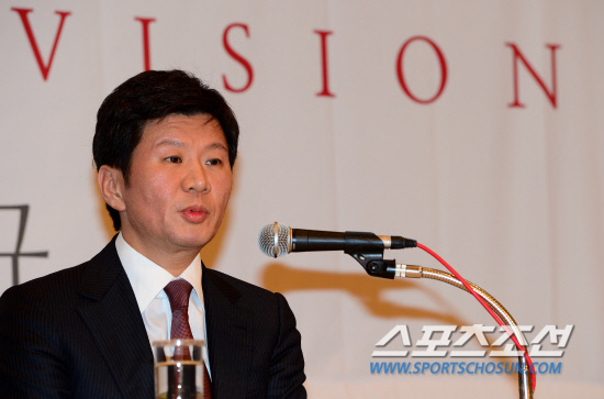 '축구협회장 출마 선언하는 정몽규 총재' 정 총재가 7일 오후 서울 서대문구 홍은동 그랜드힐튼호텔에서 제52대 대한축구협회장 출마 선언 기자회견을 가졌다. 지금까지 축구협회장 선거에 출마 의사를 밝힌 후보는 정몽규 한국프로축구연맹 총재, 허승표 피플웍스 회장, 김석한 전 중등축구연맹 회장, 안종복 남북체육교류협회장과 윤상현 의원까지 총 5명이다. 기자회견에서 출마에 대한 입장을 밝히고 있는 정 총재. 홍은동=송정헌 기자 songs@sportschosun.com