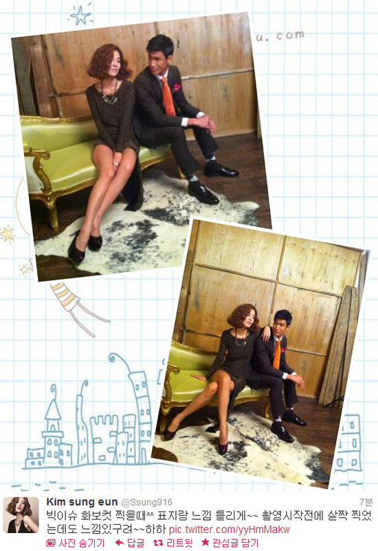 김성은은 1월 14일 오후 자신의 트위터에 "빅이슈 화보 찍을 때 표지랑 느낌 다르게~ 촬영 시작 전에 살짝 찍었는데도 느낌 있구려~~하하"라는 글과 함께 한 장의 사진을 게재했다.