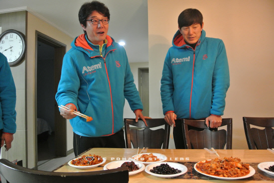 내조에 익숙한 선수들이 요리에 익숙할 리 만무했다. 서툰 솜씨에 시간이 자꾸 지연됐다. '유부남 군단'의 실력 발휘가 시작됐다. 노병준 신화용 김태수 박성호 등 '형님'들이 팔을 걷어 붙였다. 어린 선수들이 재료를 다듬고 간을 맞추면, 이들이 요리 재료를 배합해 맛을 내는 식이었다. 3개 조에서 각각 낙지볶음과 제육볶음, 닭볶음탕의 요리가 준비됐다. 평가에 나선 황선홍 감독 및 코칭스태프는 해병대 출신 김원일이 만든 낙지볶음의 손을 들어줬다. 포항 최고의 '쉐프'가 된 김원일조는 10만원 상당의 매점 상품권을 손에 쥐고 기쁨을 감추지 않았다.