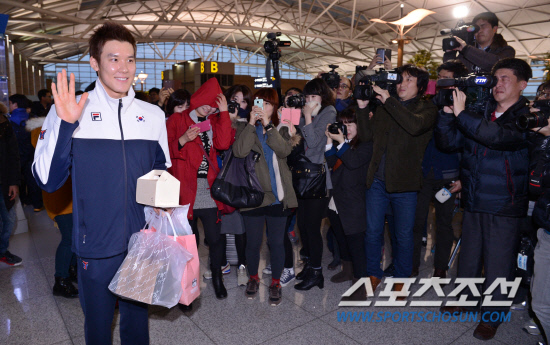 14일 오후 박태환이 인천국제공항을 통해 2013년도 첫 전지훈련지인 호주로 출국했다. SK와 결별 후 후원사를 물색하고 있는 박태환은 2014년 아시안게임 출전을 공식 선언한 후 호주 브리즈번에서 동계 전지훈련을 하며 몸상태를 최상으로 만들 계획이다. 출국에 앞서 박태환이 취재진을 향해 손을 흔들고 있다. 인천공항=김경민 기자 kyungmin@sportschosun.com / 2013.01.14.