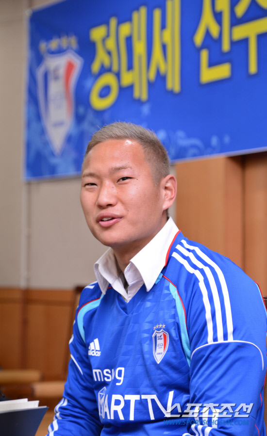 10일 오후 서울 신문로 축구회관에서 수원 삼성에 입단한 정대세의 기자회견이 열렸다. 수원과 3년 계약을 맺은 정대세의 등번호는 서정원 수원 감독의 현역 시절 번호인 14번으로 확정됐다. 정대세는 량규사(2001년 울산), 김영휘(2002년 성남), 안영학(2006~2009년 부산, 수원)에 이어 K리그를 뛰는 4번째 북한 국적 선수가 됐다. 정대세의 영입으로 수원은 안영학에 이어 두 번째 북한 대표팀 출신 선수를 보유하게 됐다. 입단 기자회견에서 정대세가 취재진의 질문에 답하고 있다. 김경민 기자 kyungmin@sportschosun.com /2013.01.10. |