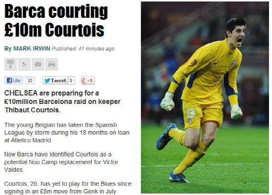 벨기에 출신의 젊은 유망주 쿠르투와는 바르셀로나가 찾는 스타일의 골키퍼다. 그는 순발력 뿐만 아니라 발기술도 좋다. 첼시에서 아틀레티코 마드리드로 임대돼 스페인 축구 문화에 대한 적응도 끝났다. 첼시는 쿠르투와의 몸값으로 1000만파운드 이상을 원하는 것으로 알려졌다. 첼시는 2011년 7월 쿠르투와 영입 당시 겡크에 800만파운드를 지불한 바 있다.
