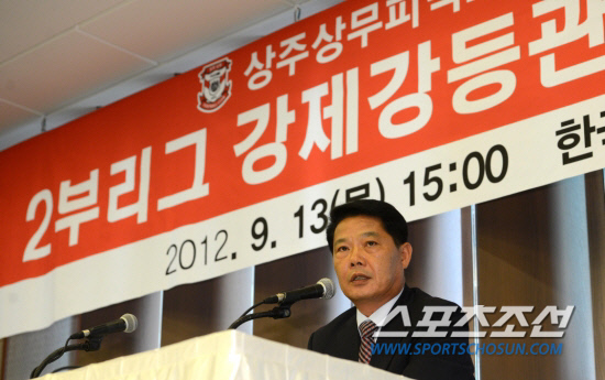 한국프로축구연맹 이사회는 지난해 9월 상주 상무의 K-리그 강제 강등을 결정했다. 클럽라이센스 요견을 갖추기 못했기 때문에 1부리그에 잔류할 수 없다는 결정을 내렸다. 이에 상주는 잔여시즌 보이콧 결정을 내렸고 1부리그에서 자취를 감췄다. 한때 아마추어로의 전환을 고민하기도 했다. 방향을 틀었다. 군인 선수들의 경기력 유지를 위해 2013년 2부리그 참가를 결정했다. 2부리그 우승으로 1부리그에 재참가 한다는 야심찬 계획을 세웠다.