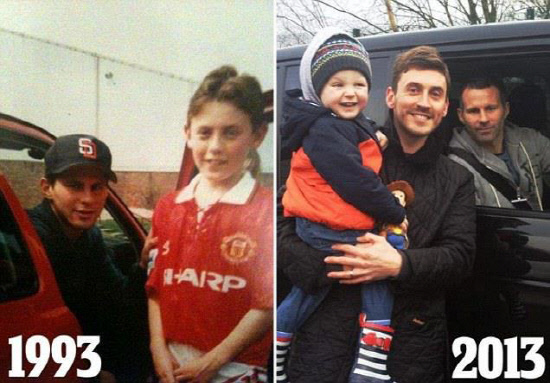 빛바랜 사진 속에 약관의 라이언 긱스(40, 맨체스터 유나이티드)가 맨유 유니폼을 입은 꼬마 팬과 포즈를 취하고 있다. 시간이 흘러 소년 팬은 한 아이의 아버지가 됐고 아들과 함께 40대에 들어선 긱스와 포즈를 취했다.