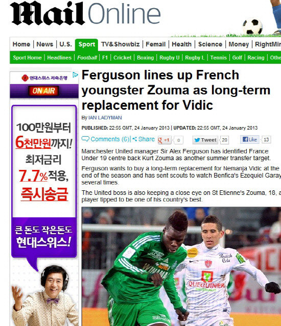 프랑스 19세 이하 대표 커트 조우마(생테티엔)가 알렉스 퍼거슨 맨유 감독의 레이더망에 걸려들었다.