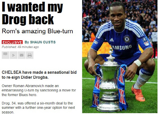 급하긴 급했나보다. 첼시가 디디에 드로그바 재영입에 나섰다는 소식이다.