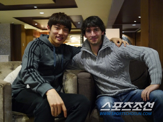 | ◇28일 윤석영이 머물고 있는 런던 호텔에 전남에서 동고동락했던 제라드 누스 피지컬 코치가 찾아왔다. 어깨동무를 한 채 환한 미소를 지었다. 현재 잉글랜드 2부리그인 챔피언십 브라이튼 & 호브 알비온(Brighton & Hove Albion)에서 유소년 총감독으로 일하고 있는 제라드 코치와 프리미어리거가 된 윤석영은 영국생활과 개인운동 노하우에 대해 3시간 넘게 이야기꽃을 피웠다. . |