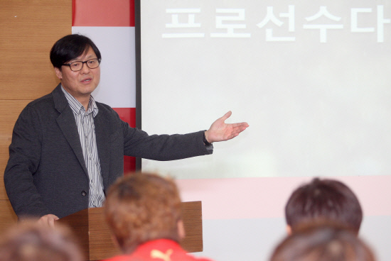 강의 주제는 '나는 진정한 프로선수다'이다. 종합선물세트다. 프로 선수로서의 마음가짐과 자기관리, 팀과 팬, 미디어나 에이전트와의 관계, 사회공헌 등 현실적인 내용들이 담겨 있다. 구단의 반응은 폭발적이다. 현장감 넘치는 강의에 고개를 끄덕이고 있다. 강연 후 선수들의 눈빛이 달라졌다는 것이 구단의 전언이다.