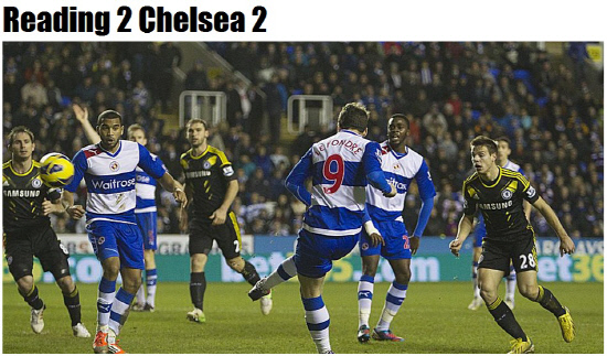 첼시는 31일(한국시각) 영국 레딩 마데자키 스타디움서 열린 2012~2013시즌 잉글랜드 프리미어리그 24라운드서 레딩과 2대2로 비겼다. 첼시는 마타, 램파드의 연속골로 앞서갔지만 후반 막판 내리 두 골을 내주며 다 잡은 승리를 놓쳤다. 베니테스 감독이 "왜 졌는지 이해할 수 없다"고 할 정도로 충격적인 무승부다. 이날 무승부로 승점 1점을 추가하는데 그친 첼시는 승점 46점(13승7무4패)에 그치며 선두 맨유(승점 59)에 승점 13점 뒤진 3위에 머물렀다.