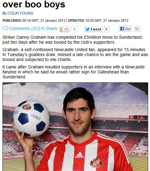 '기성용 짝꿍' 대니 그래험이 결국 선덜랜드로 이적을 마무리지었다. 이적료는 500만파운드다.