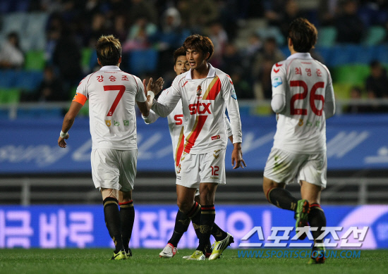 이제 프로 6년차 선수로 성장했다. 경남은 특별한 팀이다. 2010년 부산에서 전북으로 이적한 강승조는 2011년 여름 경남으로 다시 한번 유니폼을 갈아입었다. 팀에 합류한지 불과 6개월 만에 주장 완장을 찼다. "당시에 내가 주장이 될 거라고 예상도 못했다. 선수들이 모인 자리에서 감독님께서 '올시즌 주장이 강승조다'라고 하시길래 깜짝 놀랬다"고 했다.