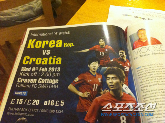한편, 이날 매거진에 한국과 크로아티아 평가전 광고가 실려 눈길을 끌었다. 경기 예매서비스를 제공하는 '티켓마스터'의 광고다. 이 광고에서도 태극전사의 선두주자는 기성용이었다. 웨스트햄전에 그를 보기 위해 경기장을 찾은 한국인 관광객, 유학생과 교민을 위한 전략적 마케팅이었다. 기성용의 사진이 가장 크게 실렸고, 손흥민 이동국 박주영이 뒤를 이었다.