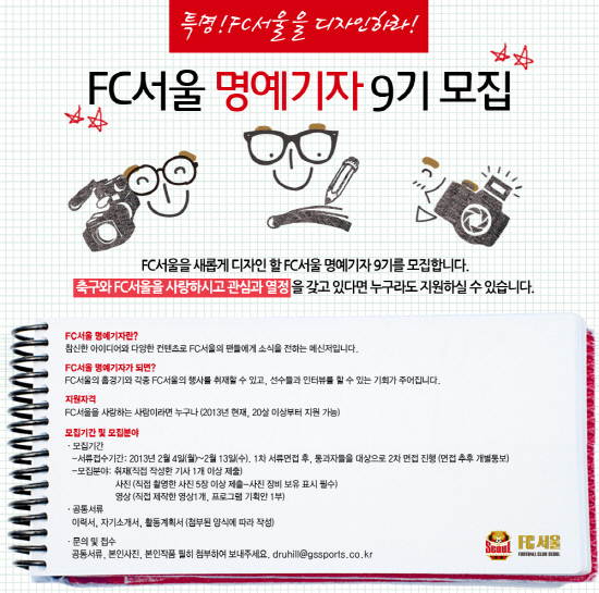 FC서울이 2013시즌을 함께 할 명예기자를 모집한다.