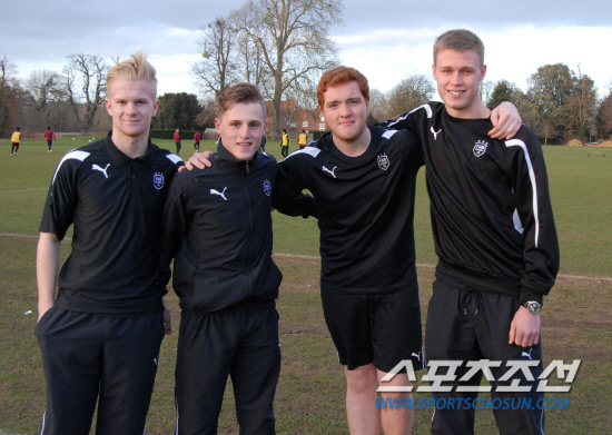 A대표팀의 훈련장을 지켜보고 있던 FAB의 선수들. 왼쪽부터 애런, 알렉스, 조지, 레온. 말로우(영국)=이 건 기자 bbadagun@sportschosun.com