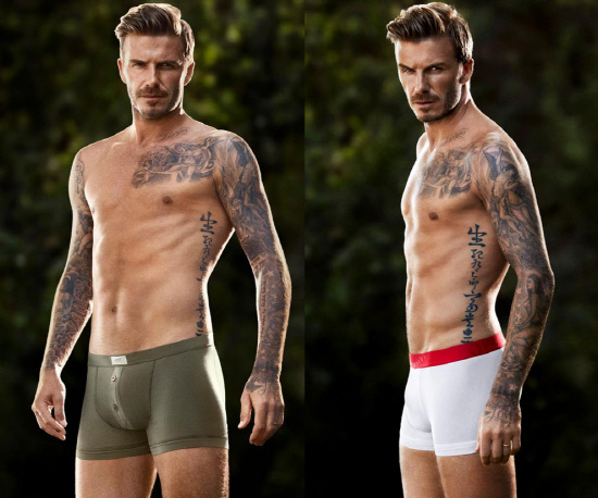 베컴은 2007년 이탈리아 명품 브랜드 아르마니를 통해 처음 언더웨어 광고를 찍었다. 당시 아르마니가 베컴의 주요 부위를 볼륨감 있게 리터치했다는 '포토샵 논란'이 일면서 '골든볼(Goldenball)'이라는 별명을 얻기도 했다. 이후 2009년 말 스웨덴 의류브랜드 H&M과 다시 계약을 하면서 세계에서 가장 '핫한' 남성 속옷 모델로 떠올랐다.