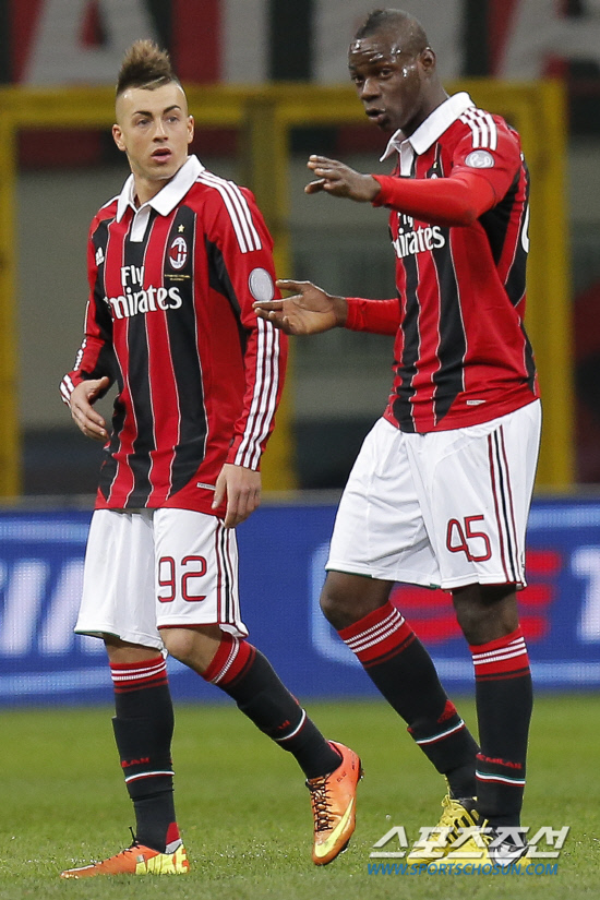 | 지난 4일 우디네세전을 통해 AC밀란 데뷔전을 치른 발로텔리(오른쪽)가 경기 중 엘 샤라위에게 말을 하고 있다. |
