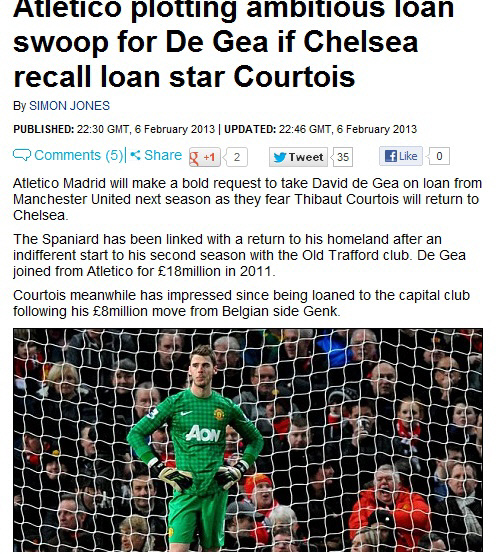 7일(한국시각) 영국 일간지 데일리메일은 아틀레티코 마드리드가 데헤아의 임대를 준비 중이라고 보도했다. 전제가 있다. 현재 팀의 넘버1 골키퍼 티보 쿠르투와가 첼시로 돌아간다면 말이다. 쿠르투와는 페테르 체흐에 밀려 임대로 아틀레티코 마드리드에 와있는 상태다.