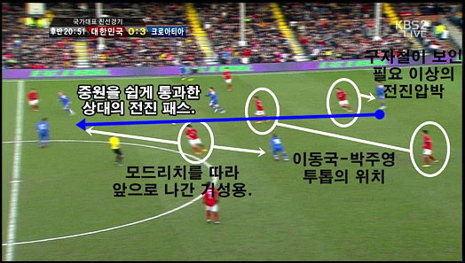 이런 경기를 한 번 하고 나면 들끓는 여론에 '지구 종말'이 오는 게 아닌가 싶을 정도다. 그럼에도 브라질로 가기 위해 최종 예선 4경기를 더 치러야 하는 상황은 변하지 않는다. 월드컵 본선에서나 맞붙어 볼 법한 높은 클래스의 상대를 만나 폐허가 된 분위기 속, '한 줄기 빛을 찾기 위해 어떻게 해야 하느냐'에 초점을 맞춰 건설적인 대화를 나눠보는 것이 원색적인 비난을 퍼붓는 것보다 현명할 일일지도 모른다. 현실적인 벽을 절절히 느꼈던 크로아티아전을 차근차근 되짚어보고자 한다. 최강희 감독이 시도한 '중원 실험'을 중심으로 말이다.