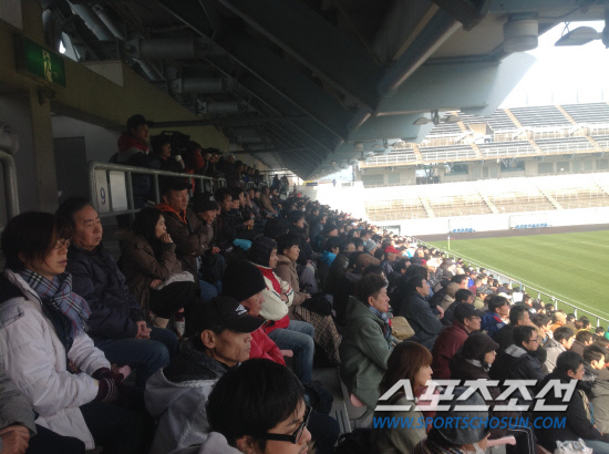 지난달 29일 대전 시티즌과 사간도스의 연습경기를 보기위해 일본 도스시로 이동했다. 후쿠오카에 내리자마자 지하철로 기차로 2시간 동안 쉼없이 달렸다. 도스역에 가까워지자 경기장이 보였다. 지난시즌 J-리그 5위팀의 홈구장이라고 하기에는 너무 작아보였다. 도스시는 인구가 약 7만명에 불과한 소도시라고 하더니. 사간도스는 새롭게 축구도시로 떠오르는 곳이다. 지난해 윤정환 감독은 J2-리그에서 승격하자마자 팀을 J1-리그 5위로 이끌며 돌풍을 일으켰다. 사간도스는 연봉총액이 51억원에 불과한 약소클럽이다. 팬들도 열광했다. 경기당 무려 1만1991명의 관중이 사간도스의 홈경기장을 찾았다. 인구의 16%가 주말마다 경기장에 모인 것이다.