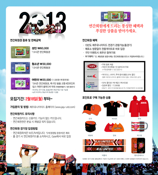 제주 유나이티드가 2013시즌 연간회원권 판매를 시작한다.