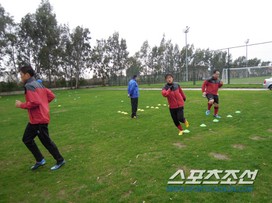 사람 잡는 회복훈련(?)을 마친 뒤 연습경기가 치러지고 있는 경기장 옆 훈련장으로 이동했다. 플라비우 피지컬 코치와 윤 코치가 경기 투입을 기다리는 후보 선수들을 모아놓고 코디네이트 프로그램을 시작했다. 장애물을 뛰어 넘는 1단계부터 5~6차례 지그재그로 왕복을 반복하는 7단계까지를 한 세트로 잡아놓고 선수들을 조련하기 시작했다. 윤 코치는 "경기 상황에 따라 투입되지 않는 선수들이 있다. 순간 파워를 쓰는데 중점을 맞춘다. 점점 강도를 높인다. 90분을 뛴 것과 비슷한 효과를 만드는 훈련"이라고 소개했다. 내리는 비 속에 문규현 등과 함께 훈련을 시작했다. 5분이 지나자 땀이 줄줄 나고 숨이 턱턱 막힌다. 물끄러미 바라보던 플라비우 코치가 말했다. "힘들어? 괜찮아? 파이팅!" 선수들은 한 단계를 마칠 때마다 "1㎏ 빠졌다~"며 박수를 쳤다. 전반 45분이 마무리 될 때까지 훈련이 반복됐다. 윤 코치는 "오늘은 최고 강도로 한 편이다. 아마 내일 몸이 엄청나게 쑤실 것"이라고 웃었다. 플라비우 코치는 기자가 대견했는지 껄껄 웃으며 손수 스트레칭을 도와준 뒤 엄지를 치켜 올렸다. 기자는 머릿 속이 하얗게 된지 오래였다. 희미한 미소만 지어보일 뿐이었다. K-리거로 가는 길은 상상 이상으로 멀고도 험했다.
