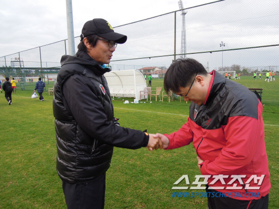 7일(한국시각) 터키 안탈리아 풋볼센터에서 진행된 포항 선수단 훈련에 참가했다. 선수들과 똑같은 훈련복에 축구화까지 맞춰 신고 버스에 올라타는 모습을 지켜보던 강 철 수석코치가 씩 웃는다. "얘들아, 신입 선수 들어왔다~." 그리 멀지 않은 훈련장에 도착 후 라커룸을 나오자마자 주어진 임무는 아이스박스 옮기기였다. 막내들이 주로 전담하는 일이다. 밑바닥부터의 시작은 각오했던 일이다.