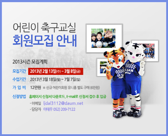 '철퇴축구' 울산 현대가 2013년 어린이 축구교실의 회원을 모집한다.