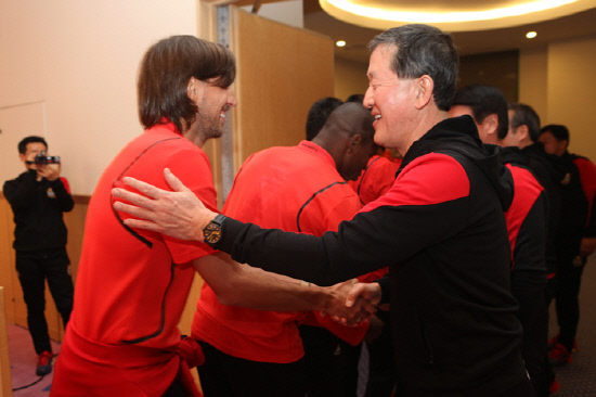 허 회장은 올시즌도 K-리그 클래식을 선도하는 구단답게 팬들에게 감동을 주는 모습을 보여주기를 당부했다. 14일 선수단과의 만찬에서 허 회장은 "무엇보다 팬들에게 기쁨과 감동을 선사할 수 있는 모습을 보일 수 있게 준비하는 것이 중요하다"면서 "최용수 감독을 중심으로 모두가 한마음이 되어 이제는 대한민국을 넘어 아시아에서 FC서울의 이름이 드높여질 수 있도록 최선을 다해주기 바란다"고 말했다.