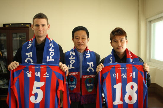 수원FC는 14일 오전 수원FC 사무국에서 호주 출신 수비수 알렉산다르 요바노비치(24·알렉스)와 구 유고 출신 공격수 보그단 밀리치(26·보그단) 등 2명의 외국인 선수와 포항스틸러스 출신의 이성재(26·공격수)의 입단식을 실시했다.