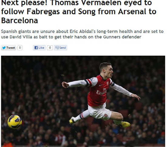 17일(한국시각) 영국 주간지 선데이피플은 바르셀로나가 아스널의 수비수 토마스 베르마엘렌을 노리고 있다고 보도했다. 바르셀로나는 건강에 문제가 있는 에릭 아비달을 대신할 장기적인 대체자로 베르마엘렌을 점찍었다. 베르마엘렌은 중앙과 왼쪽 측면을 모두 소화할 수 있고, 패싱력이 뛰어나다는 점에서 아비달과 유사하다. 바르셀로나는 이미 여러차례 스카우트를 파견해 베르마엘렌의 플레이를 체크한 것으로 알려졌다.